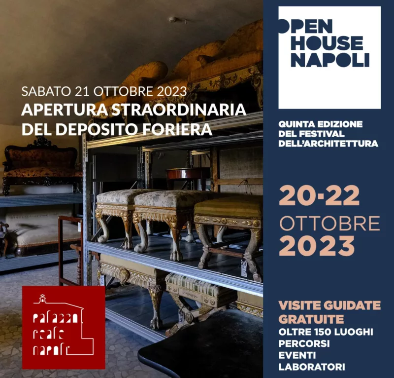 Sabato 21 ottobre, in occasione della V edizione di Open House Napoli, il festival che in un unico weekend di visite guidate apre le porte della città per accogliere il pubblico in spazi e luoghi di straordinario valore architettonico e spesso inaccessibili, il Palazzo Reale di Napoli organizza quattro turni di visite guidate presso il Deposito Foriera.